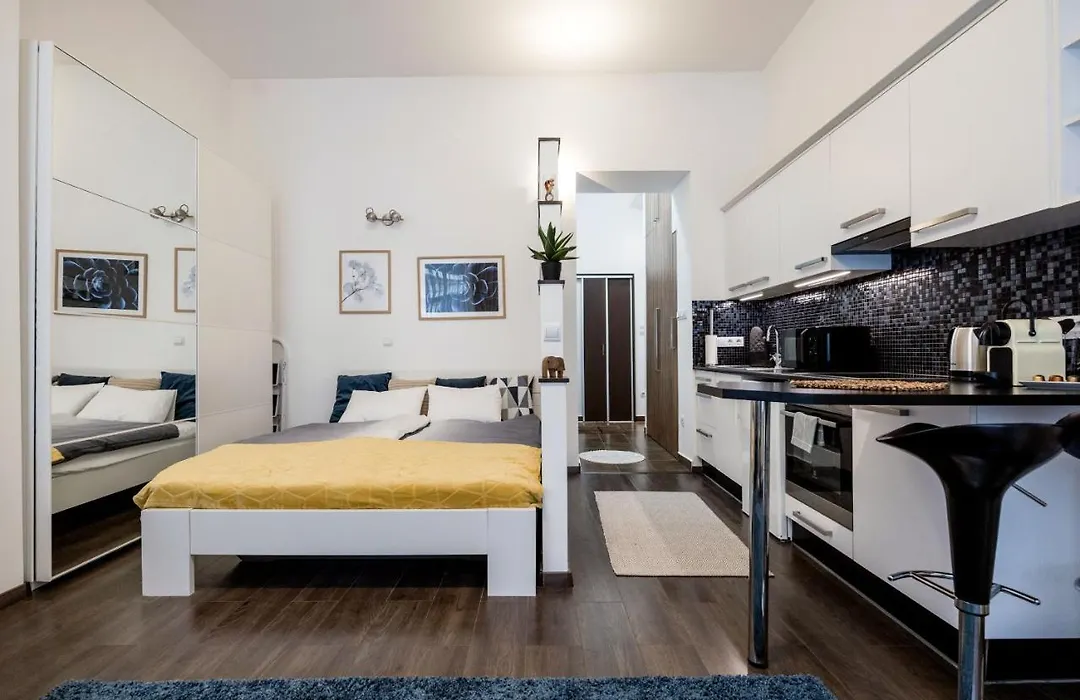 Gasten die verblijven in het appartement kunnen gebruik maken van de zelfvoorzienende voorzieningen, waaronder een waterkoker, een koelkast en een oven. Nyugati treinstation is op 300 meter hier vandaan gesitueerd.
